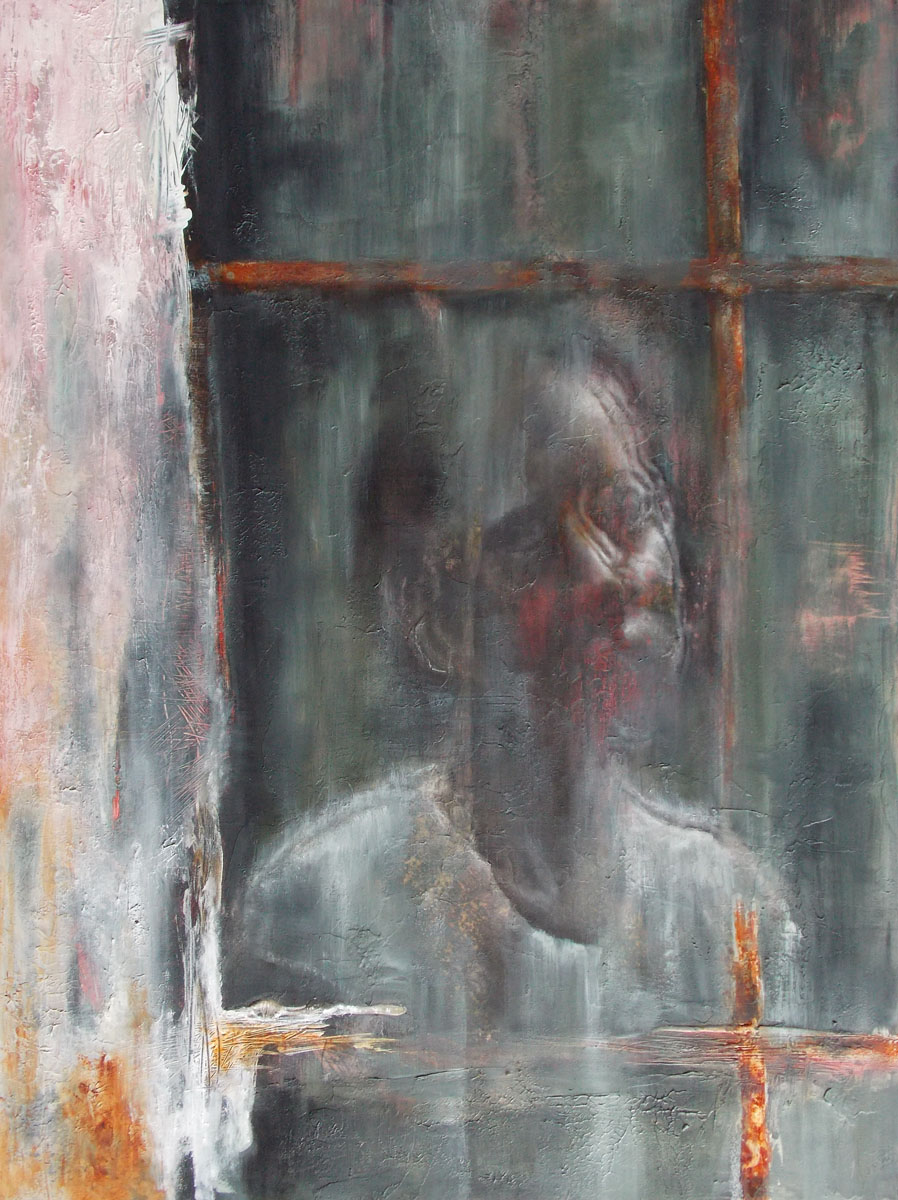 oil, conte, acrylic on panel, 18″x24″