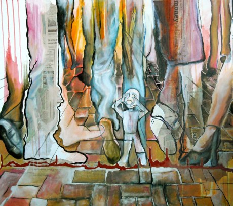 Voice acrylic, oil, & ink on canvas 40″ x 36″created 2009(click here for image link)